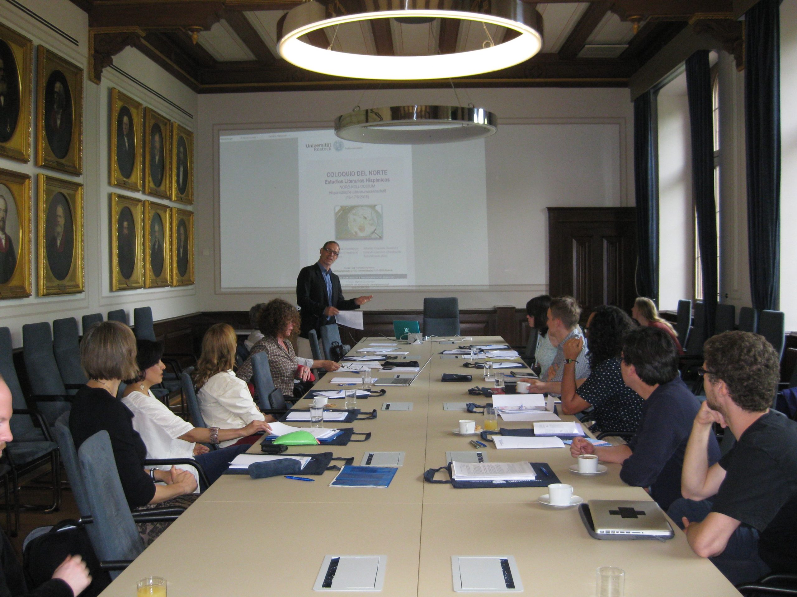 Desde el principio se incorporaron doctorandos y posdoctorandos y el Coloquio se convirtió en una importante red de mentoring para ellos. En nuestros encuentros anuales, los (pos)doctorandos presentan sus proyectos de investigación y los discuten con los catedráticos y los demás jóvenes investigadores. En el cuarto encuentro se gestó la idea de seguir desarrollando esta forma de cooperación para los jóvenes investigadores y llevarla a un nuevo nivel mediante la financiación con fondos de terceros. A lo largo de los años, tuvimos doce encuentros que se celebraron alternadamente en una de las universidades miembros. Hasta ahora se han podido organizar tres escuelas de verano que tuvieron lugar en Sehlendorf (cerca de Kiel), Castrillo de los Polvazares (cerca de León, España) y Bremen. Las escuelas de verano de Castrillo de los Polvazares y de Bremen fueron financiadas por terceros. En el caso de Castrillo de los Polvazares por el Verbund Norddeutscher Universitäten (VNU, en el marco del programa «Impuls Forschung») y por la Volkswagenstiftung en el caso de Bremen. Rebecca Kaewert y Anna-Lena Glesinski publicaron luego las actas de esta última: Dinámicas de transferencia y transformación cultural en las literaturas hispánicas, 2023).