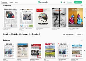 PressReader incluye asimismo una amplia selección de publicaciones en español, entre ellas El País, La Vanguardia, ABC, El Universal (México), Clarín (Argentina) o El Tiempo (Colombia), junto con numerosas revistas culturales y de actualidad. A ello se suman títulos relevantes en francés, italiano, portugués y catalán, que reflejan la riqueza y diversidad lingüística y cultural en el ámbito de las lenguas románicas.